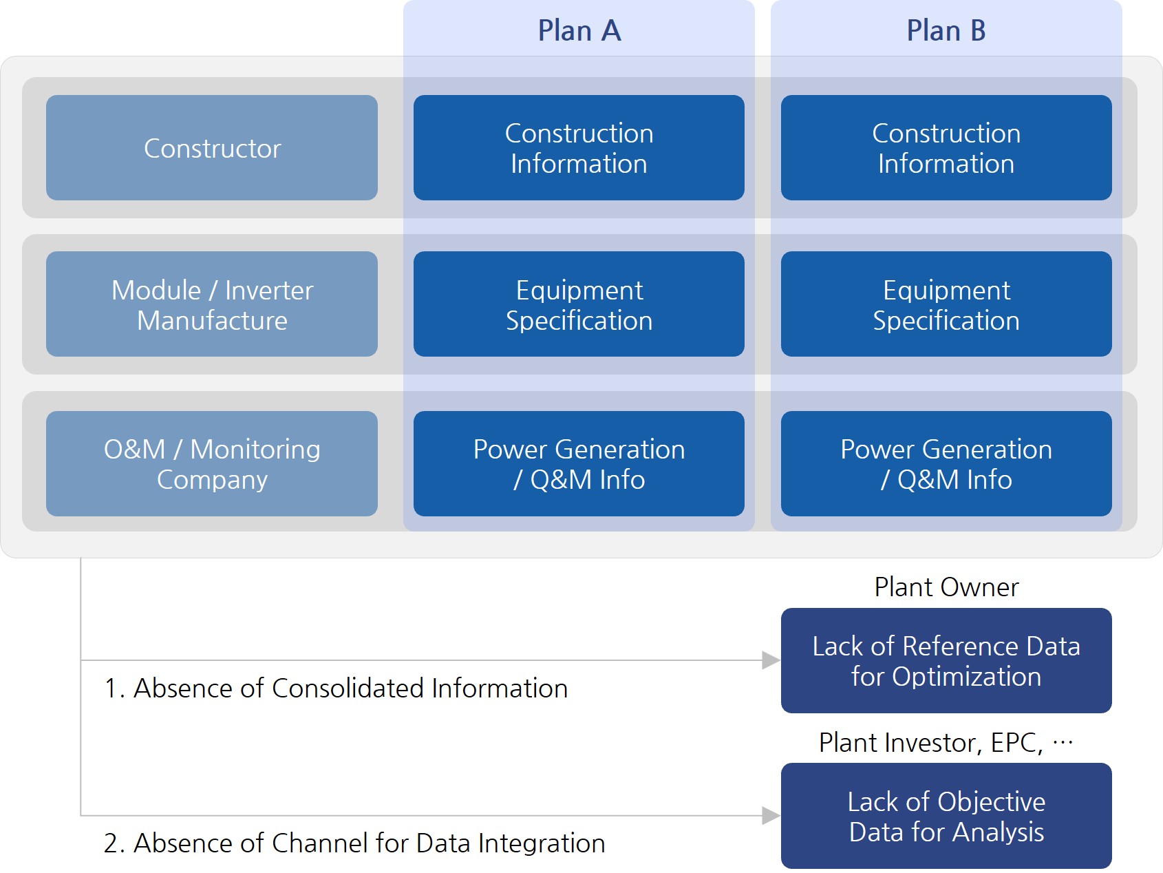 he lack of databases for managing renewable energy generation deprives the market of the ability to identify and value a given plant's life cycle. The lack of accessible archives also prevented the expansion of various renewable industries. For example, companies seeking to enter the renewable energy market, such as sales, insurance, and disposal, are reluctant to enter the industry for fear of hidden risks arising from a lack of transparent and traceable data. Interestingly, the current state of the renewable energy generation industry is quite similar to the past real estate and used car markets. Initially, there was a lack of reliable historical data, resulting in data imbalances and a transparent market cycle. As in these cases, storage management systems are critical to providing supervision of the plant's overall operating life as well as the plant's accident history and repair history. Therefore, the establishment of operational and management archives will enable the development into a reliable and competent renewable energy industry.